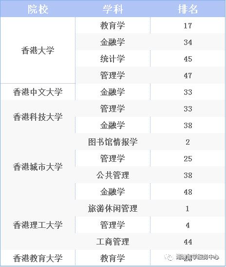 社会科学领域香港大学全面上榜!其中统计学排在世界第45名,教育学排在第17名,金融学排在第34名,管理学排在47名。